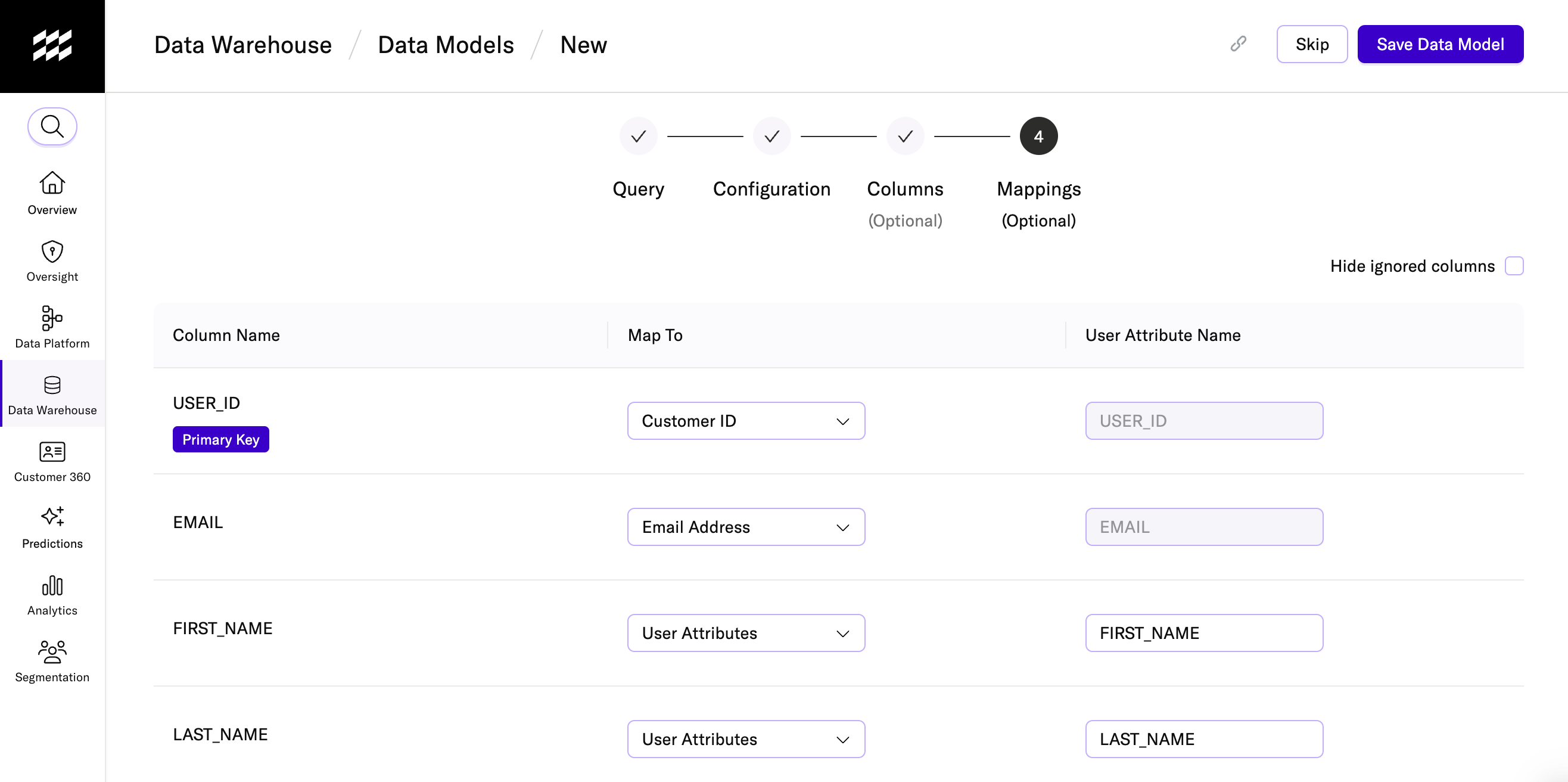Mappings control how your warehouse data is interpreted in mParticle and by downstream partners.