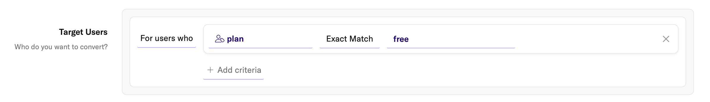 You can combine multiple conditions using AND and OR operators to refine your target users: