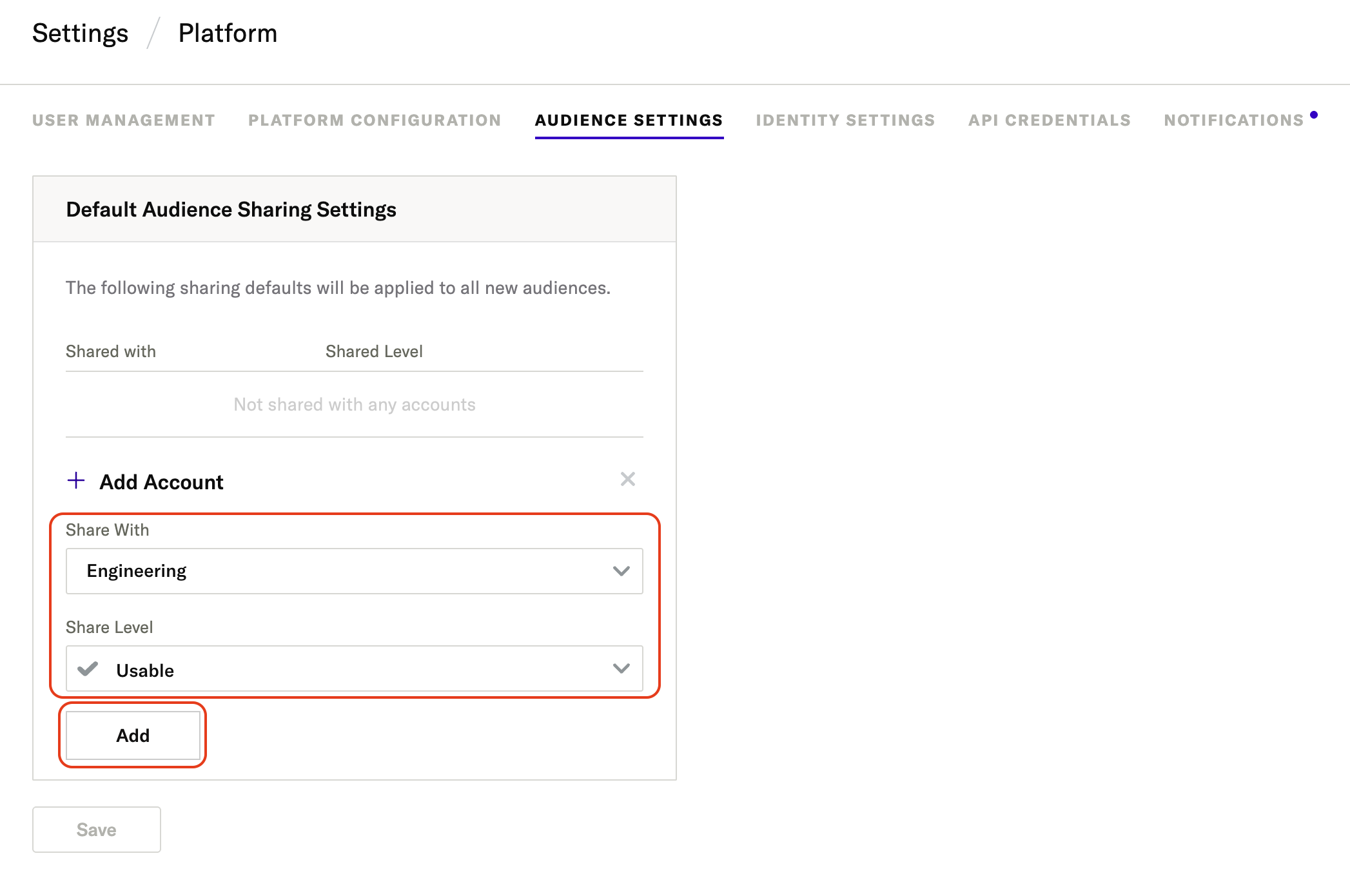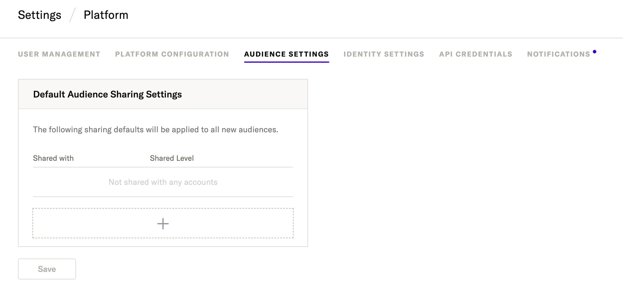 Your default audience sharing settings allow you to automatically share new audiences with specific accounts.