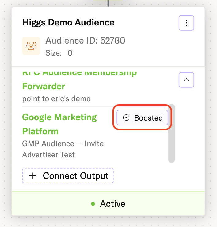 Audience connections with Match Boost turned on are labeled with a Boosted icon: