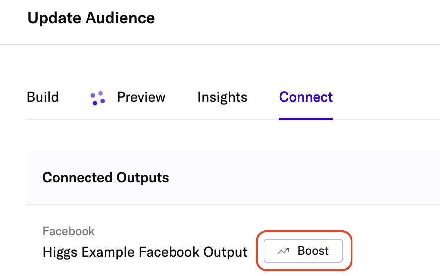 To boost an existing connection from the Audience Builder:
