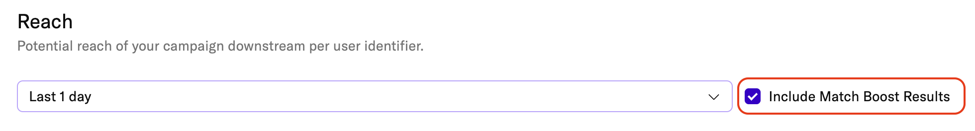 This requirement prevents Match Boost from adding identifiers that you have intentionally excluded for compliance or privacy reasons. For example, if you exclude IDFAs from an audience for compliance reasons, Match Boost will be unavailable for that connection.